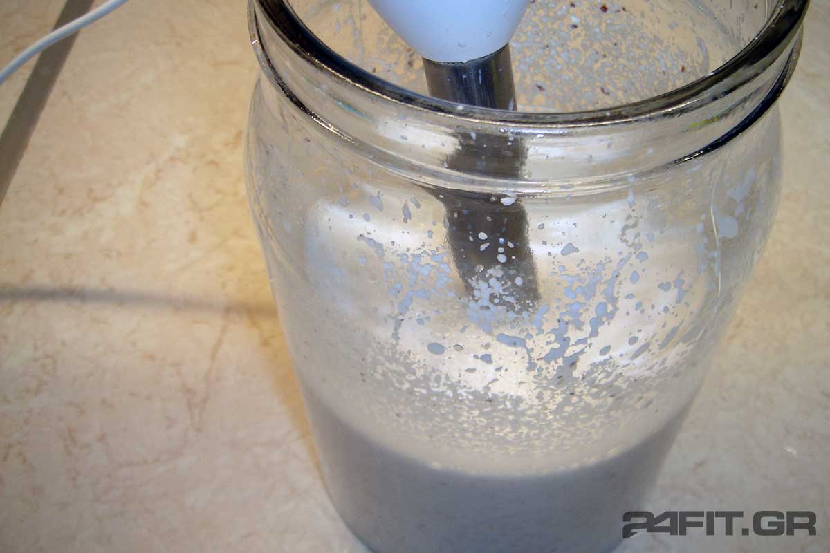 Στην παραπάνω συνταγή προσθέτετε 4-5 χουρμάδες ή 1/4 κούπας σιρόπι αγαύης και ένα κουταλάκι βανίλια σκόνη (την καφέ).