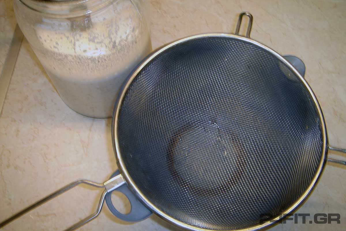 Βάζουμε ένα στραγγιστήρι πάνω σε ένα μπωλ και από πάνω στρώνουμε μια καθαρή, λεπτή, βαμβακερή πετσέτα κουζίνας.